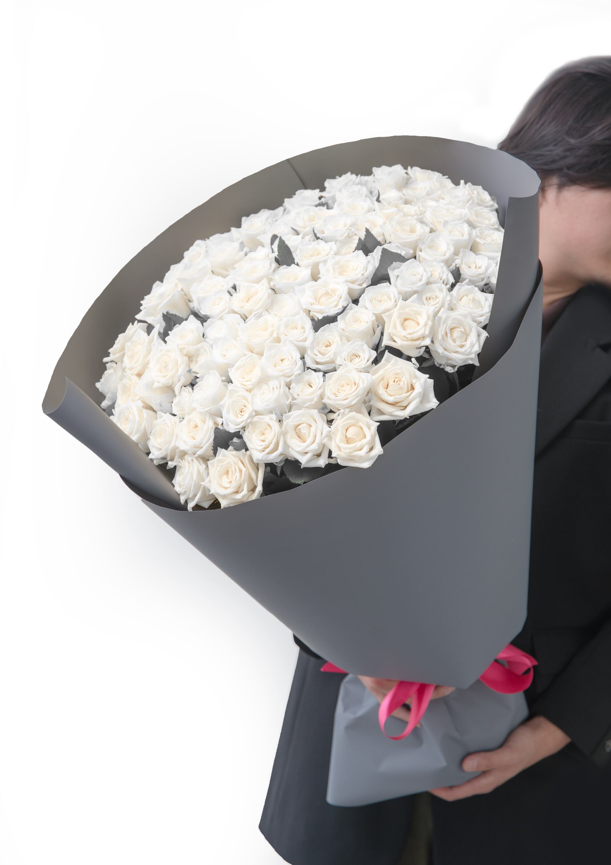 白バラの花言葉は、「純潔」「深い尊敬」「私はあなたにふさわしい」。