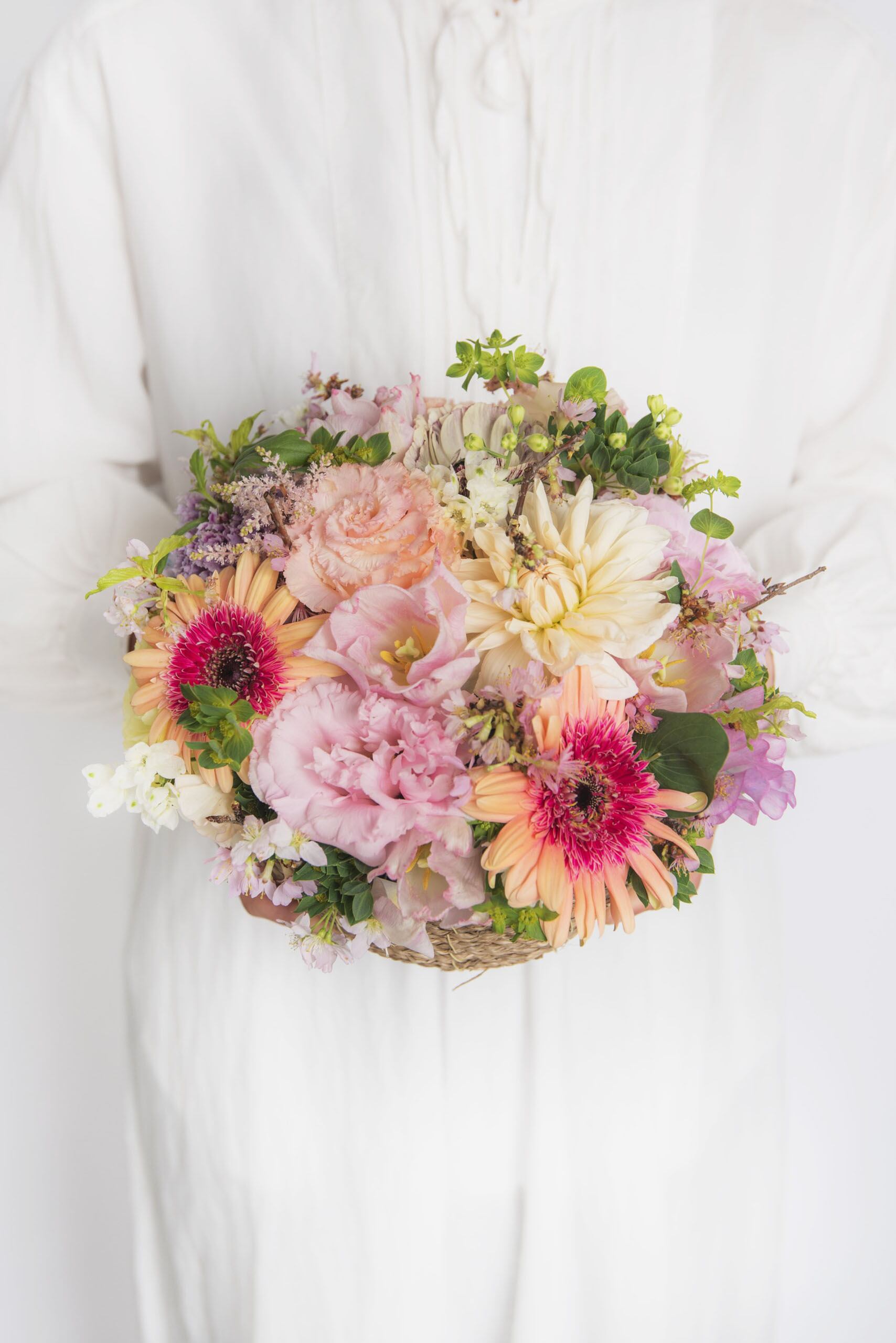 草花芽吹く温かい季節に咲く花たちで可愛らしく制作していただきます。