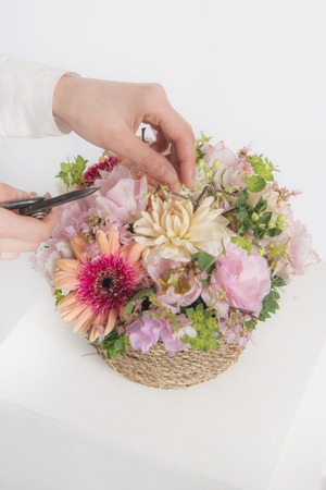 また完成形のお手本をご用意しておりますのでストレスなく愛着のある綺麗なアレンジメントをお作りになれることと思います。