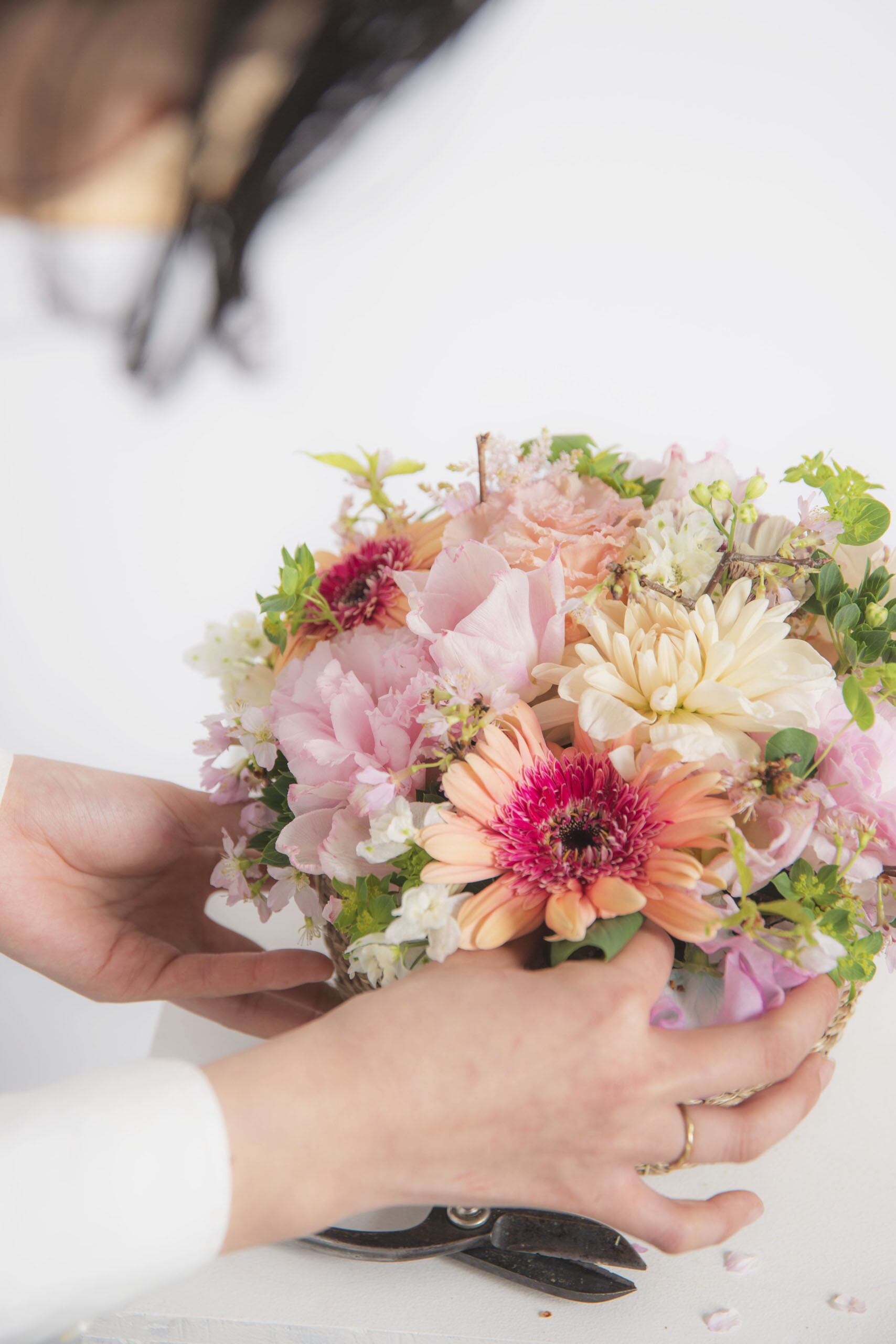 草花芽吹く温かい季節に咲く花たちで可愛らしく制作していただきます。