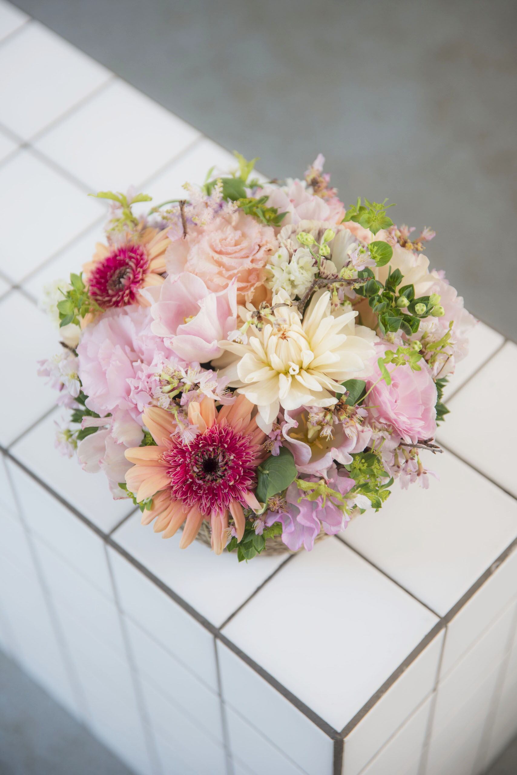 ワークショップ第一弾は、やわらかな春のお花で作るフレッシュアレンジメント。