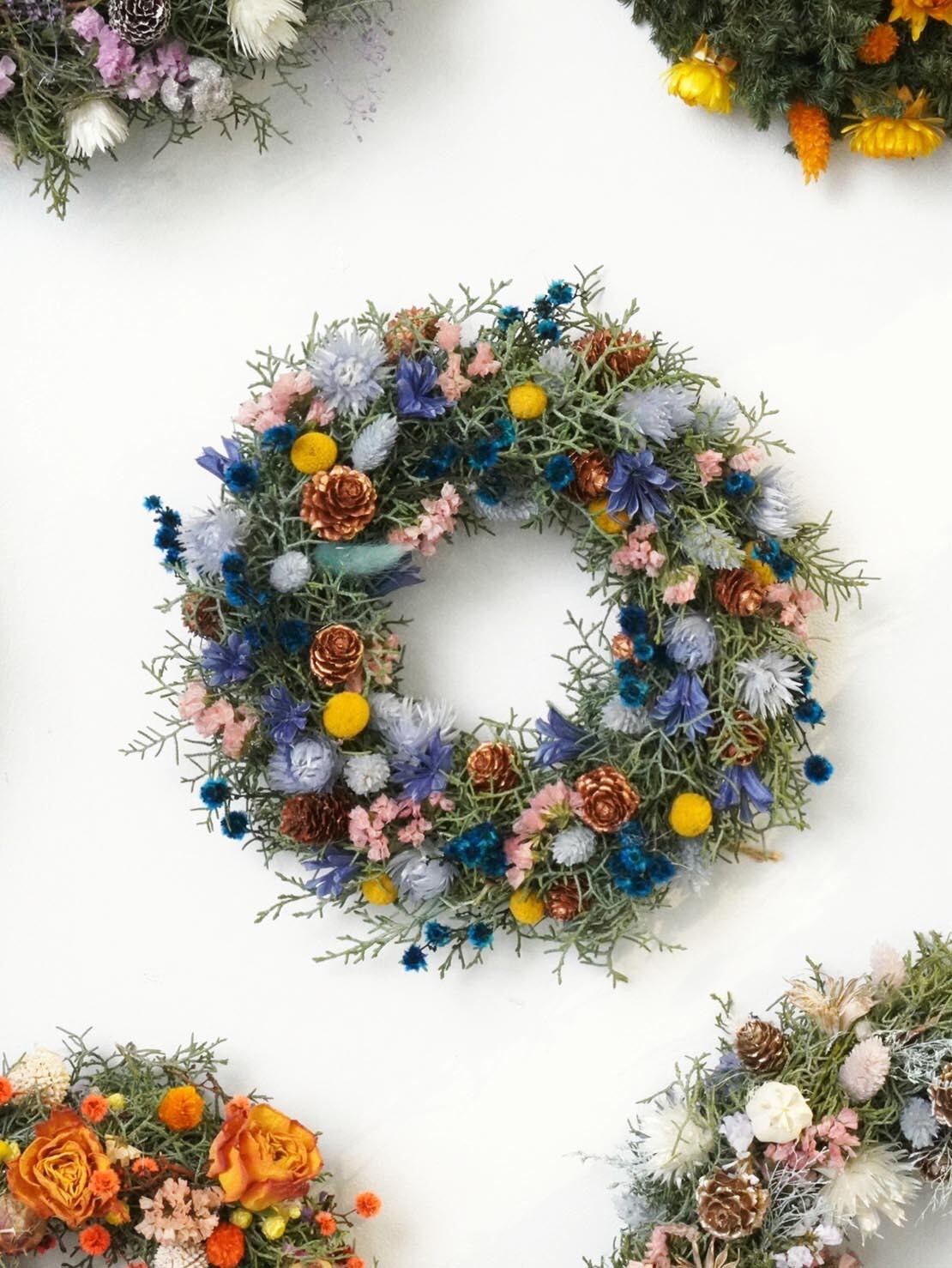 PLAYのオリジナルクリスマスリース。カラフルな配色で一つひとつ丁寧に製作したリースは楽しいクリスマスを演出すること間違いなし!