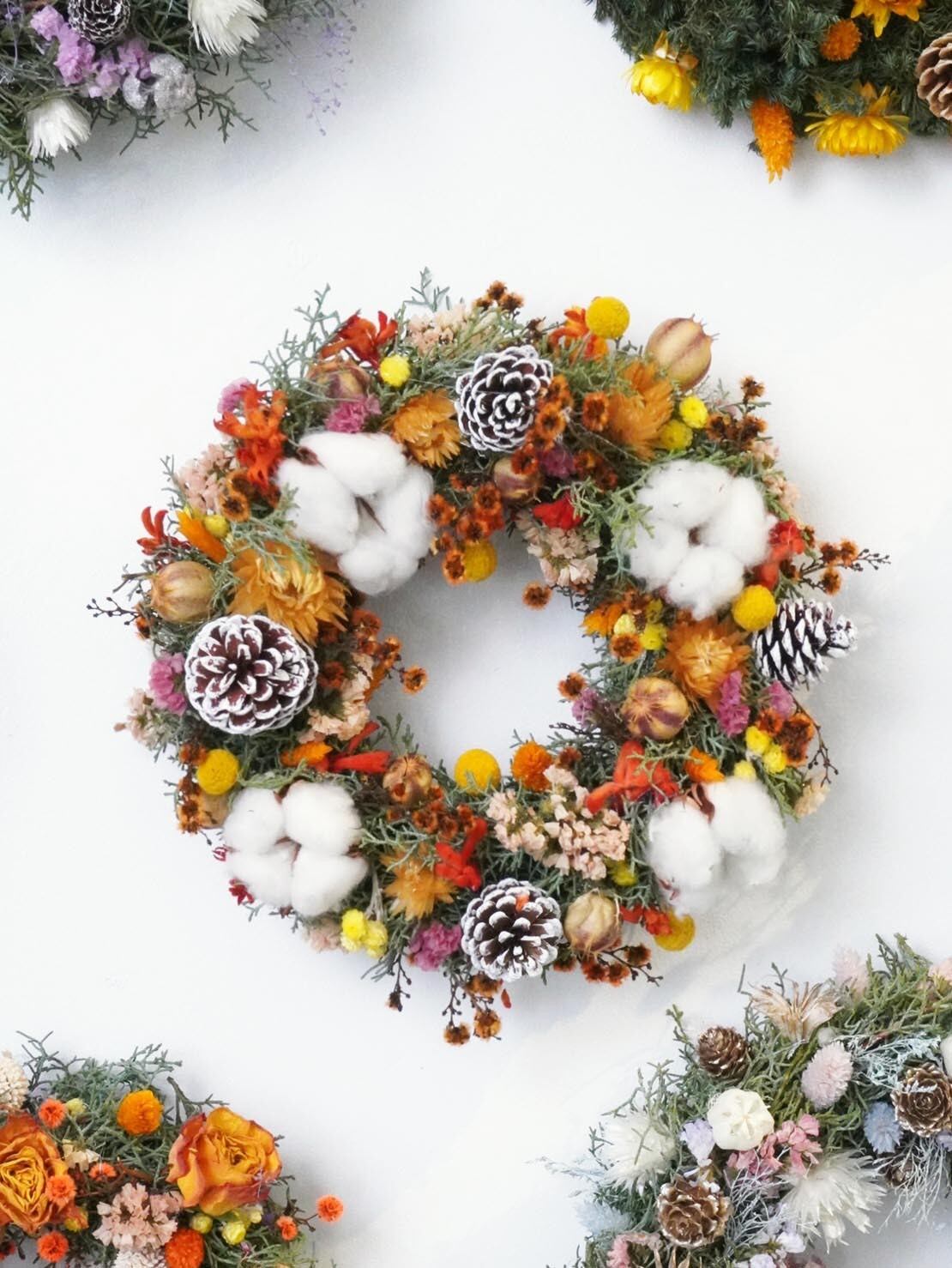 PLAYのオリジナルクリスマスリース。カラフルな配色で一つひとつ丁寧に製作したリースは楽しいクリスマスを演出すること間違いなし!