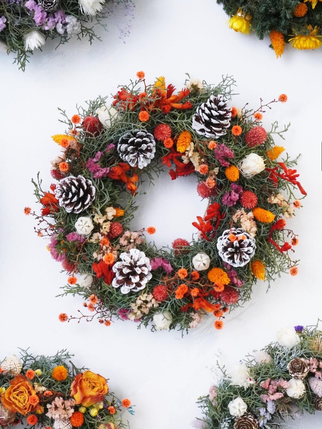 PLAYのオリジナルクリスマスリース。カラフルな配色で一つひとつ丁寧に製作したリースは楽しいクリスマスを演出すること間違いなし!